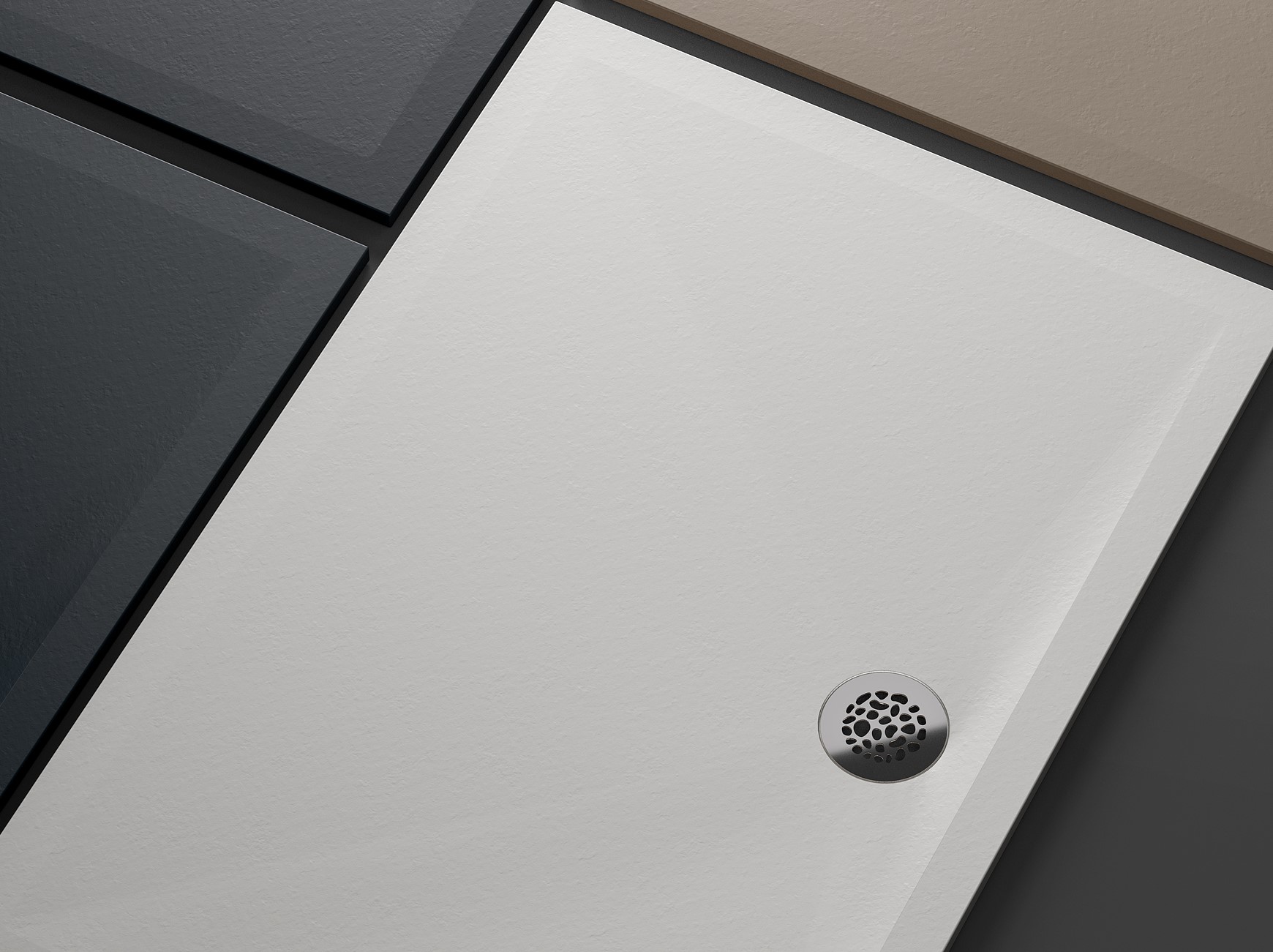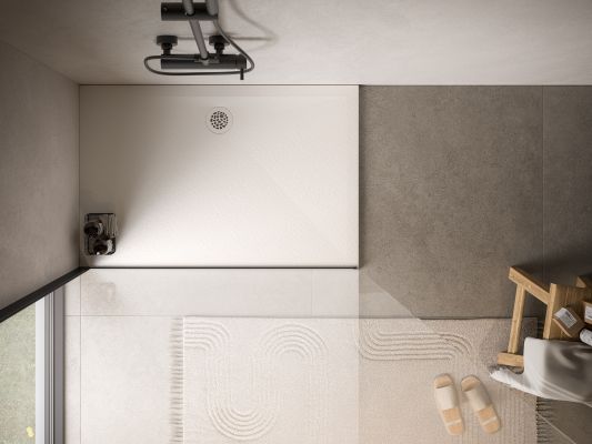 Die extraflache AIR-Duschwanne (nur 20 mm hoch) aus MineraLite mit Gelcoat-Oberfläche bietet die perfekte Lösung für Renovierungen und Neubauten. Erhältlich in drei eleganten Farbvarianten, verleiht sie dem Badezimmer mit ihren organischen Formen und der Natursteinoptik einen modernen, minimalistischen Look. Serienmäßig ist die Duschwanne mit einem extraflachen Ablauf und einer doppelseitigen Abdeckung ausgestattet – eine Seite aus Stahl, die andere farblich passend zur Wanne lackiert, für eine harmonische Optik.