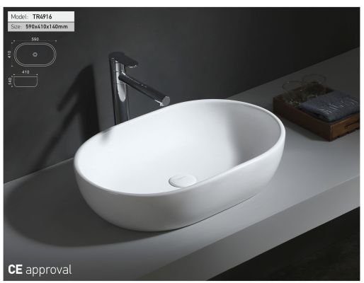 Aufsatzwaschbecken ohne Überlauf und Hahnloch.