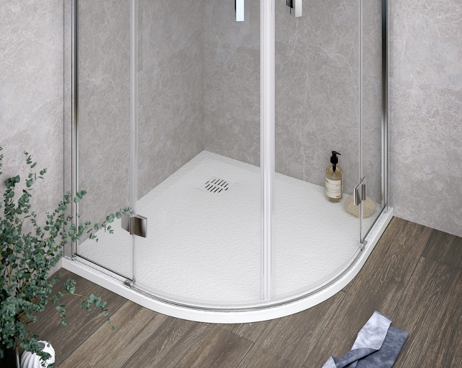 Die Stone Duschwannen mit Reliefoberfläche sind aus gegossenem Marmor hergestellt, welcher ihnen maximale Festigkeit und Widerstandsfähigkeit verleiht. Die Duschwanne wird mit einem Abdeckrosetten der gleichen Farbe geliefert und in drei Farben: Weiß, Zement und Schwarz verfügbar.
