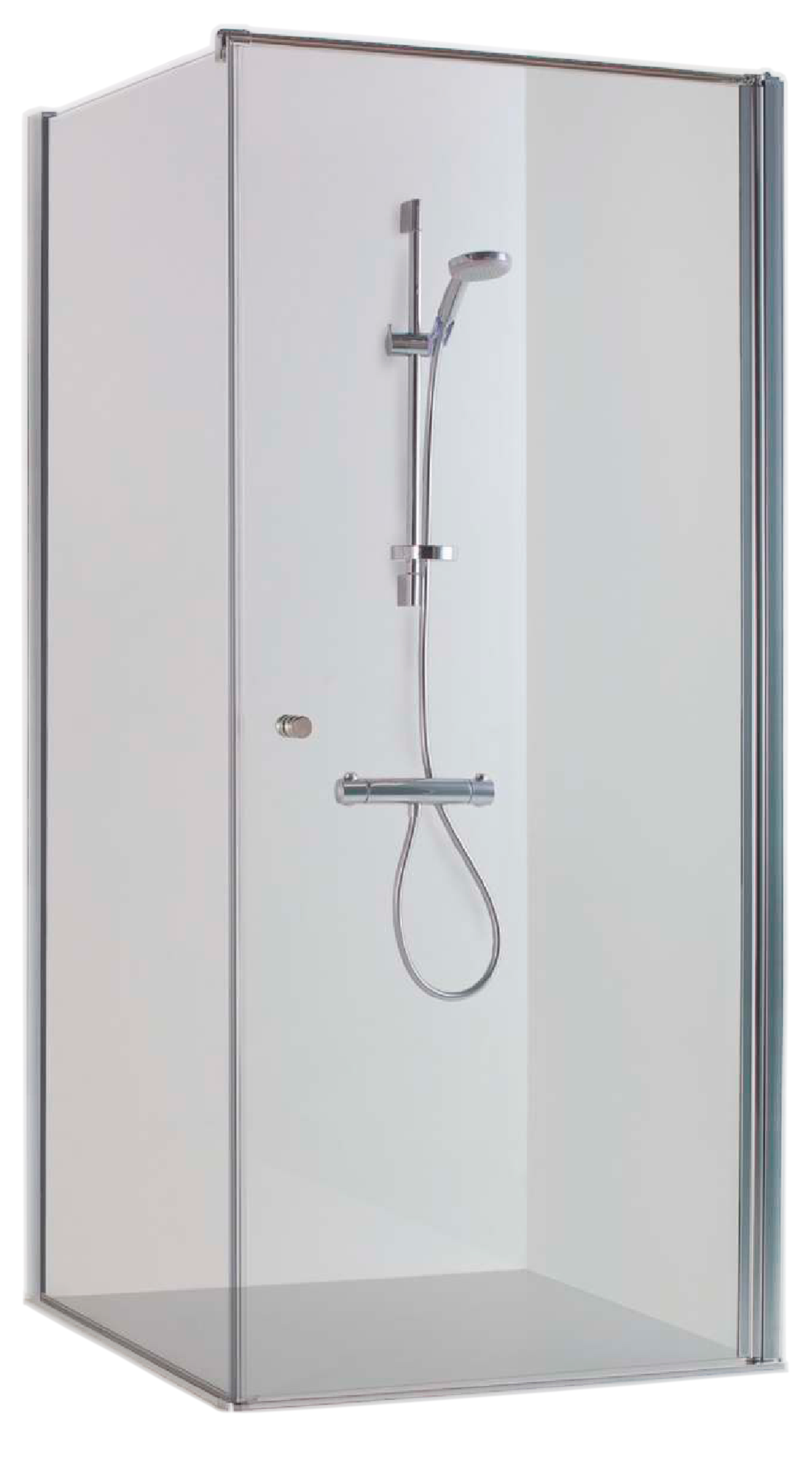 Die KRISTINA Eckdusche ist ausgestattet mit Drehtür und fester Seitenwand. Hochwertige Materialien und eine technisch ausgereifte Verarbeitung sprechen für die Eckdusche. Der Hebe-Senk-Mechanismus lässt die Tür ganz leicht öffnen und Magnetleisten verhelfen zu einem dichten Verschließen.