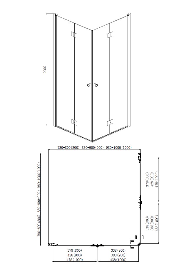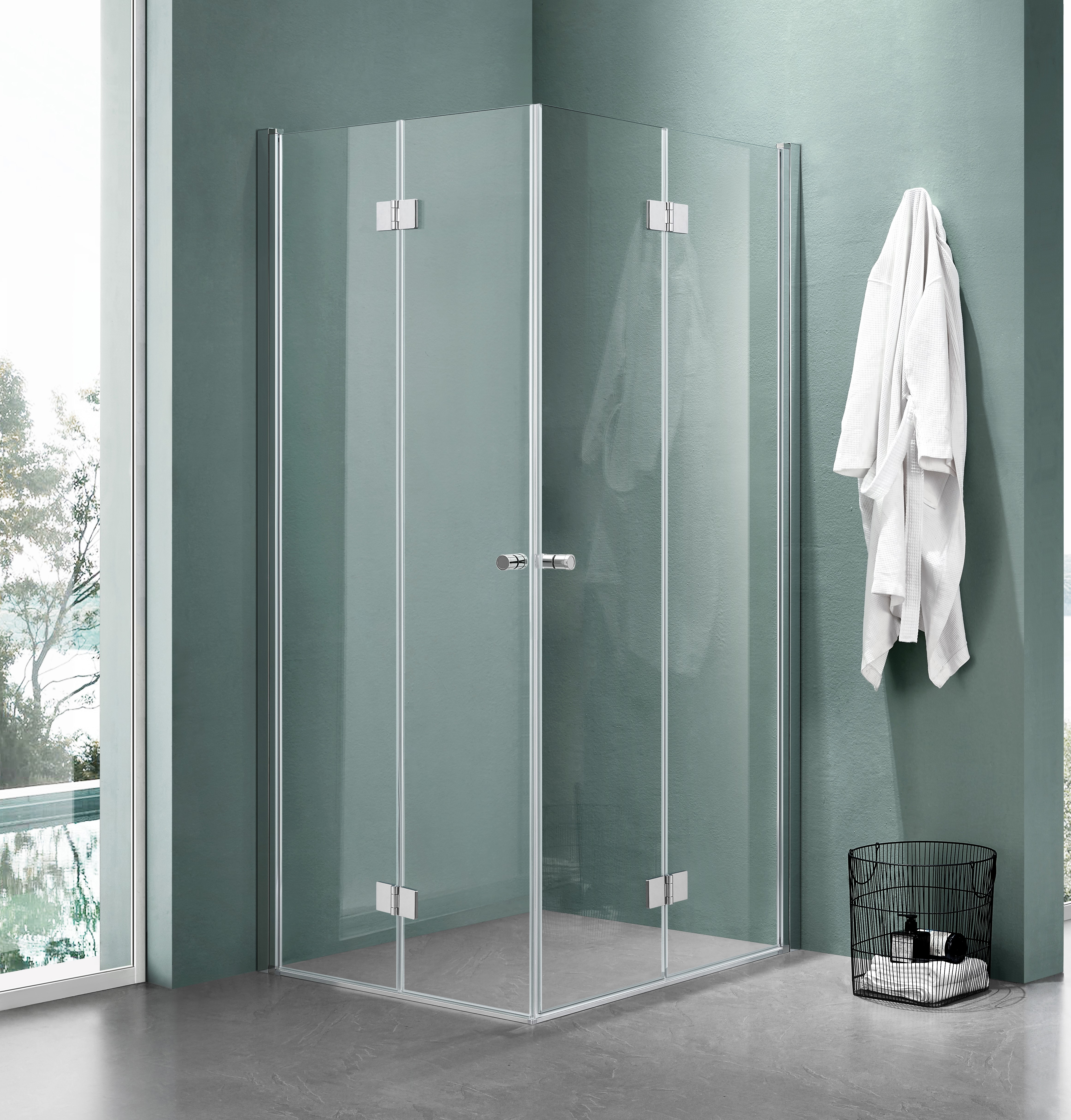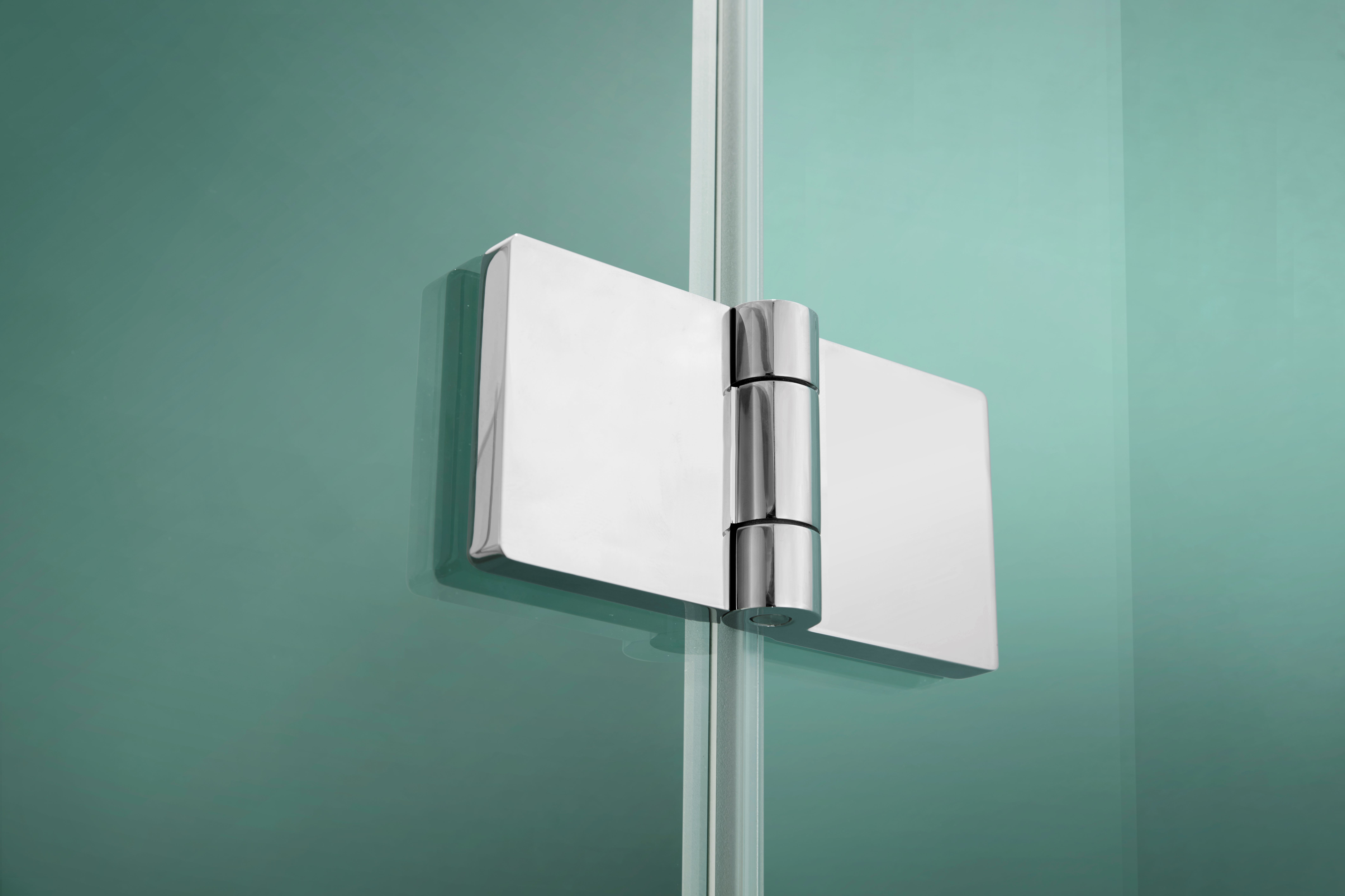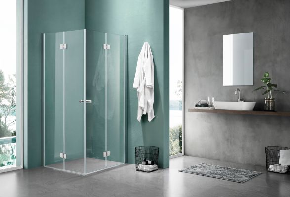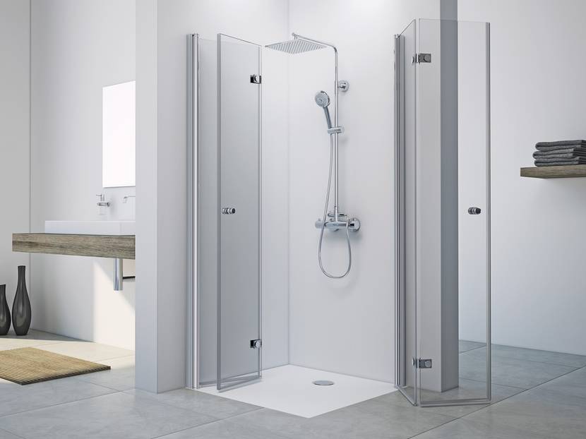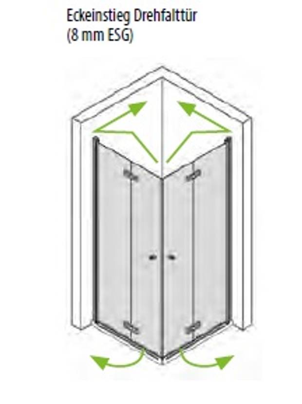 Der Eckeinstieg besteht aus zwei Falttüren aus 8 mm ESG-Sicherheitsglas, ist barrierefrei und reversibel. Die Artikelnummer bezieht sich auf eine Seite, sodass die Türen individuell kombinierbar sind. Für eine vollständige Eckdusche sollten Sie immer zwei Seiten bestellen.