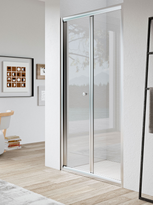 Eine extra große Türöffnung bei geringem Platzbedarf bietet diese praktische Falttür. Die Elemente werden einfach nach innen zusammengefaltet und schaffen so auch in der Nische einen bequemen Einstieg. Die vollgerahmte 4 mm ESG-Sicherheitsglas sorgt für Stabilität. Die breite Wandprofile ermöglichen einen Ausgleich bei Wandunebenheiten und gewährleisten eine optimale Passform.