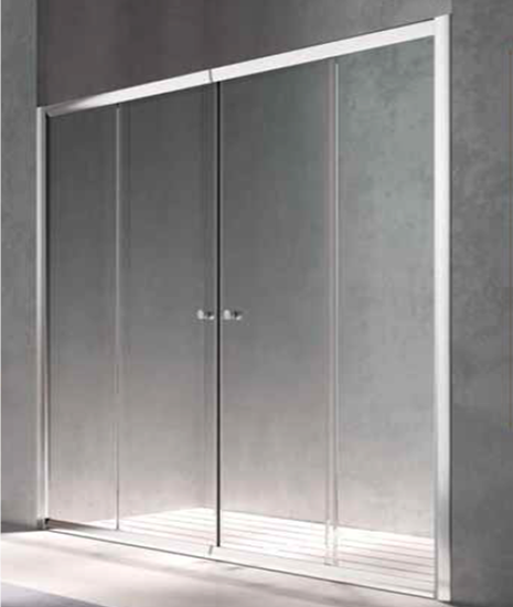 Diese 4-teilige Schiebetür in Nische verleiht Ihrem Badezimmer ein strahlendes Aussehen. Das 6mm ESG-Sicherheitsglas bietet Ihnen maximale Sicherheit. Dank umlaufender Rahmung erhöht die Dichtigkeit, auch bei geöffneter Tür tritt kein Spritz-/Tropfwasser aus.