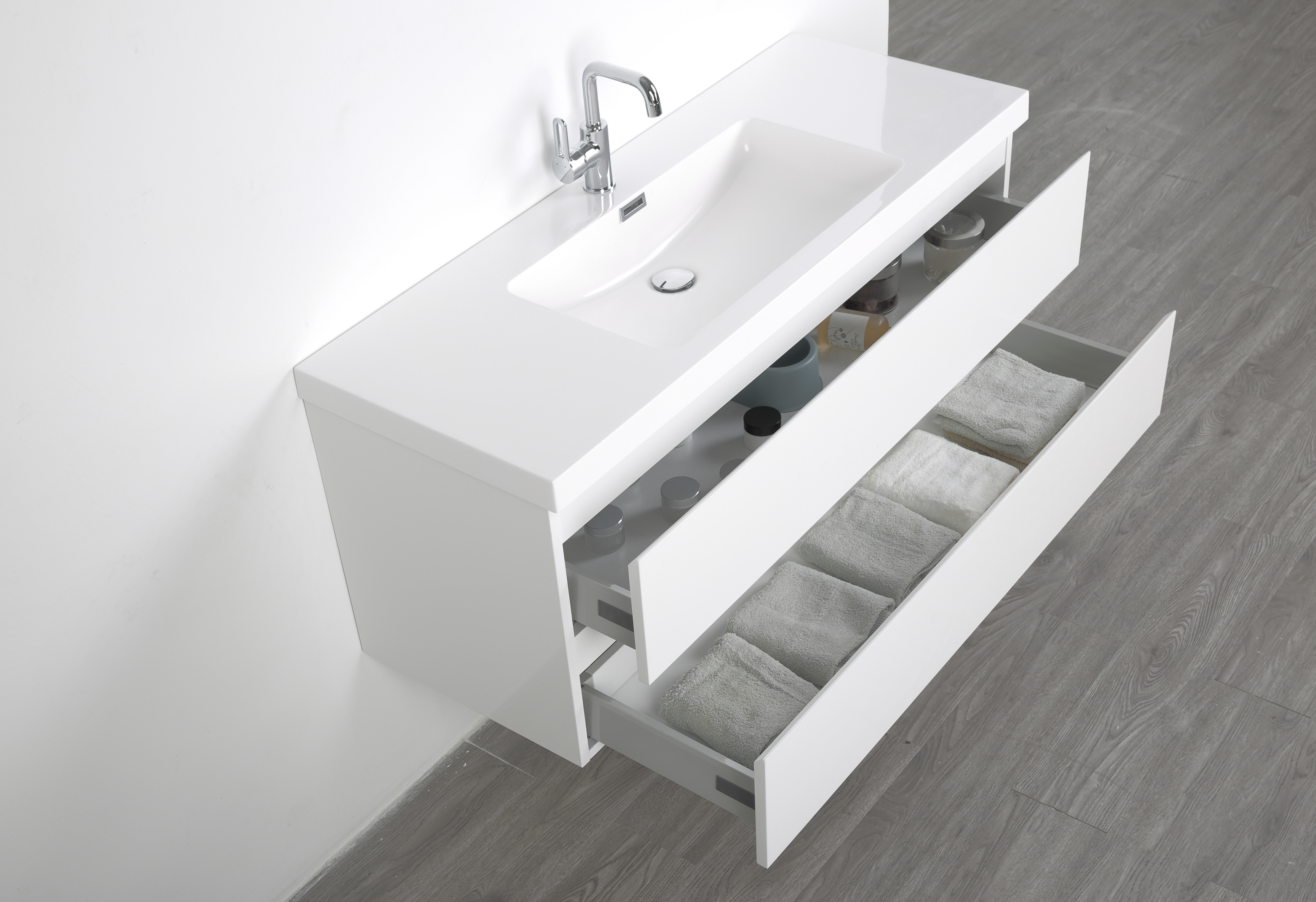 Ausgestattet mit einem hochwertigen Metall-Schubkastensystem, bietet das Badmöbel Stabilität und eine leichte Bedienbarkeit. Eine Soft-Close-Funktion sorgt dafür, dass die Schubladen sanft und geräuschlos schließen.