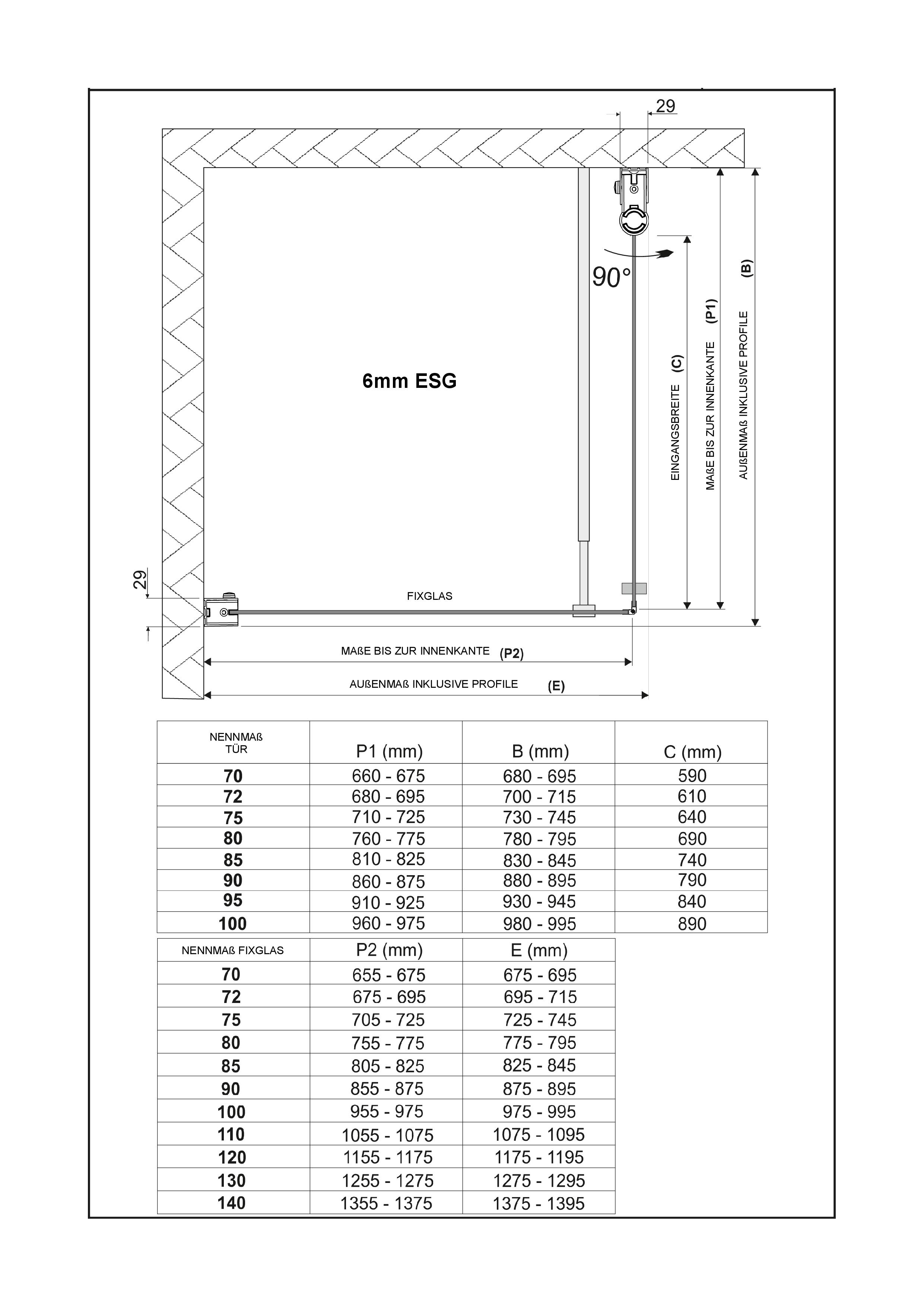 Die Anti-Kalk-Beschichtung auf dem 6 mm ESG-Sicherheitsglas verhindert, dass sich Kalk und Seifenreste festsetzen. Bei der Montage sind Sie flexibel, denn Tür und Seitenwand können rechts oder links montiert werden. Diverse Größen stehen Ihnen über die Artikelvariante zur Verfügung.