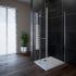Bei der Oasis Faltdrehtür mit Seitenwand (inkl. Stabilisator) handelt es sich um ein hochwertiges Produkt. Sie eignet sich für den Eckeinbau mit Seitenwand und lässt sich nach innen zusammenfalten oder außen an die Wand klappen. Ein Hebe-Senk-Mechanismus sorgt dafür, dass sich die Tür beim Öffnen leicht anhebt. Die Glaswand besteht aus 6 mm klarem Einscheibensicherheitsglas (ESG) und lässt sich dank Anti-Kalk-Beschichtung besonders leicht reinigen.