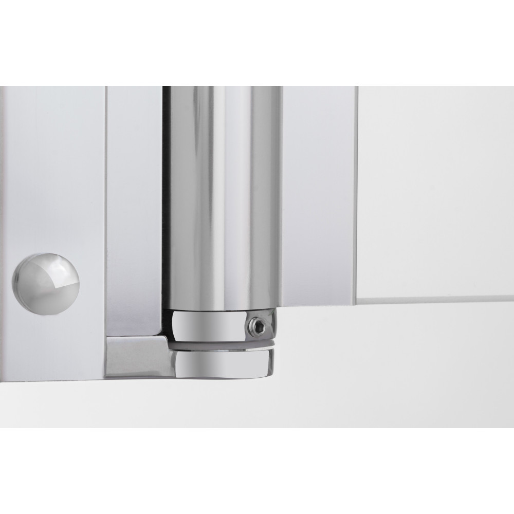 Die Duschabtrennung Greta Plus besteht aus einer eleganten Pendeltür mit Festfeld, das dank der Stabilisationsstange soliden und sicheren Halt findet. Der Hebe-Senk-Mechanismus hebt die Duschtür komfortabel beim Öffnen und Schließen leicht an. Dies erleichtert die Türöffnung und sorgt bei geschlossener Position für eine erhöhte Dichtigkeit. Zudem wird ein Schleifen der Dichtungen über den Schwallschutz verhindert, was für mehr Langlebigkeit sorgt.