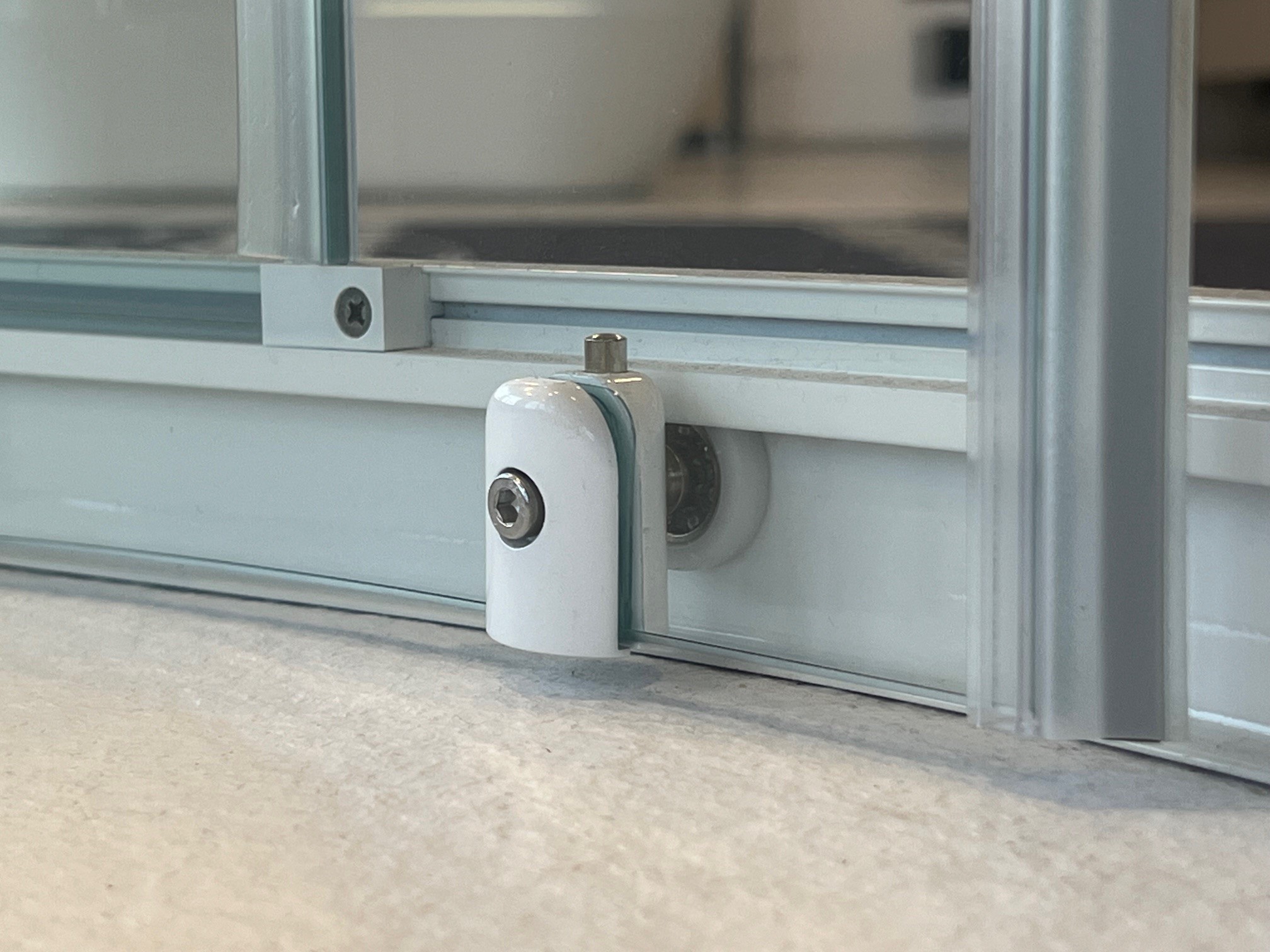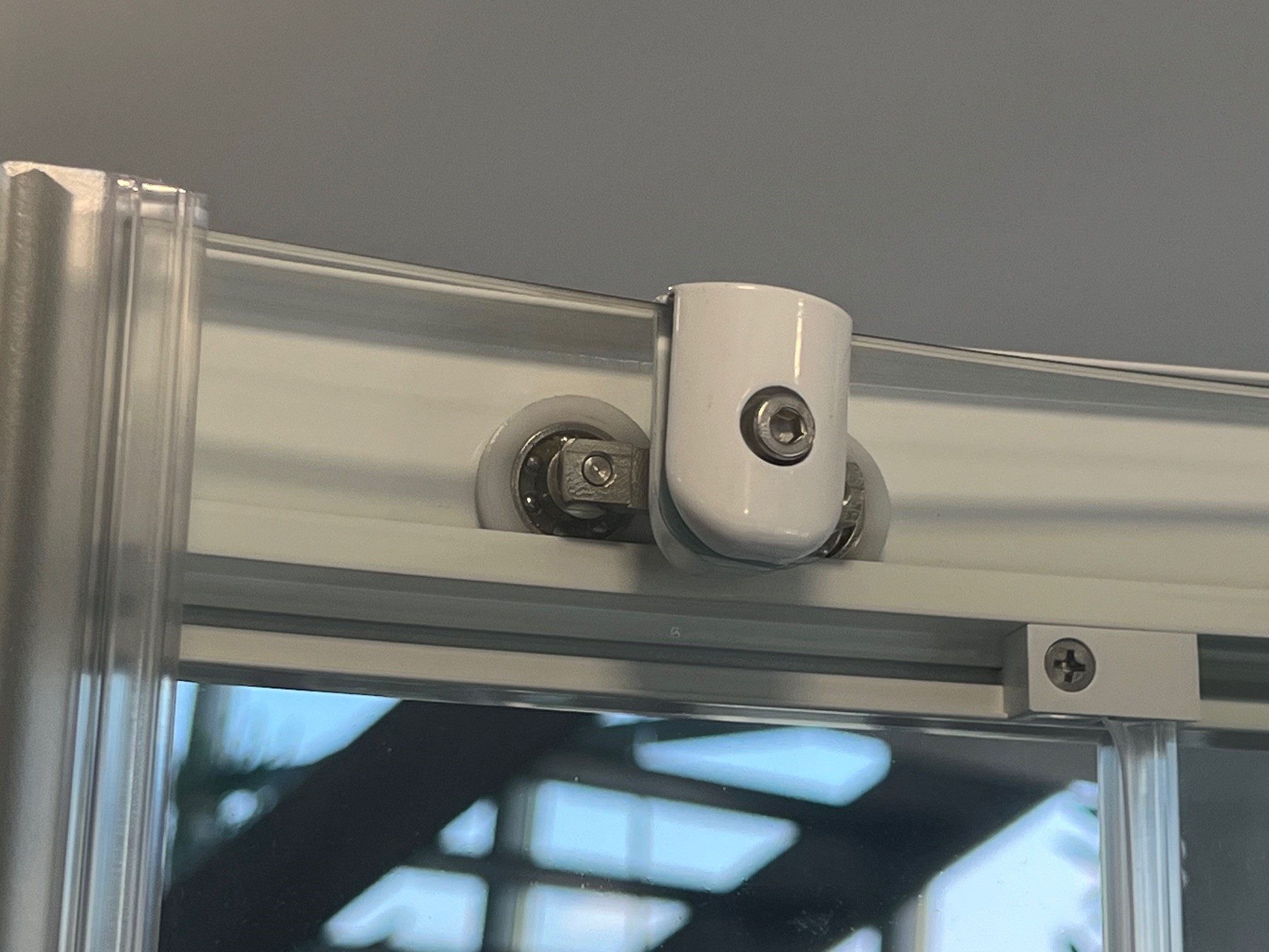 Die integrierte Oberflächenversiegelung mit Anti-Kalk-Beschichtung schützt das Glas nachhaltig vor Neuverschmutzung. Wasser perlt zuverlässig ab, wodurch Kalk- und Schmutzablagerungen deutlich reduziert werden. Für eine besonders einfache und gründliche Reinigung lassen sich die unteren Führungen komfortabel ausklinken.