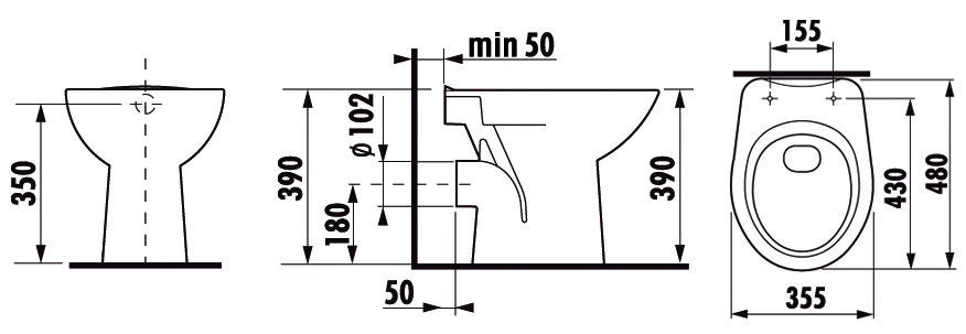 Jika Stand-WC aus Sanitärkeramik, Tiefspüler, Abgang waagrecht hinten, Spülmenge 6 Liter