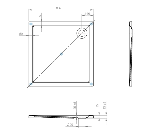 Unsere erstklassigen Duschtassen aus Sanitär-Acryl sind speziell für quadratische Duschabtrennungen mit Grundflächen von 80x80 cm, 90x90 cm, 100x100 cm sowie 120x120 cm konzipiert.