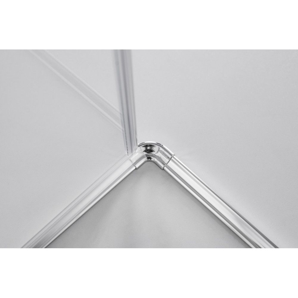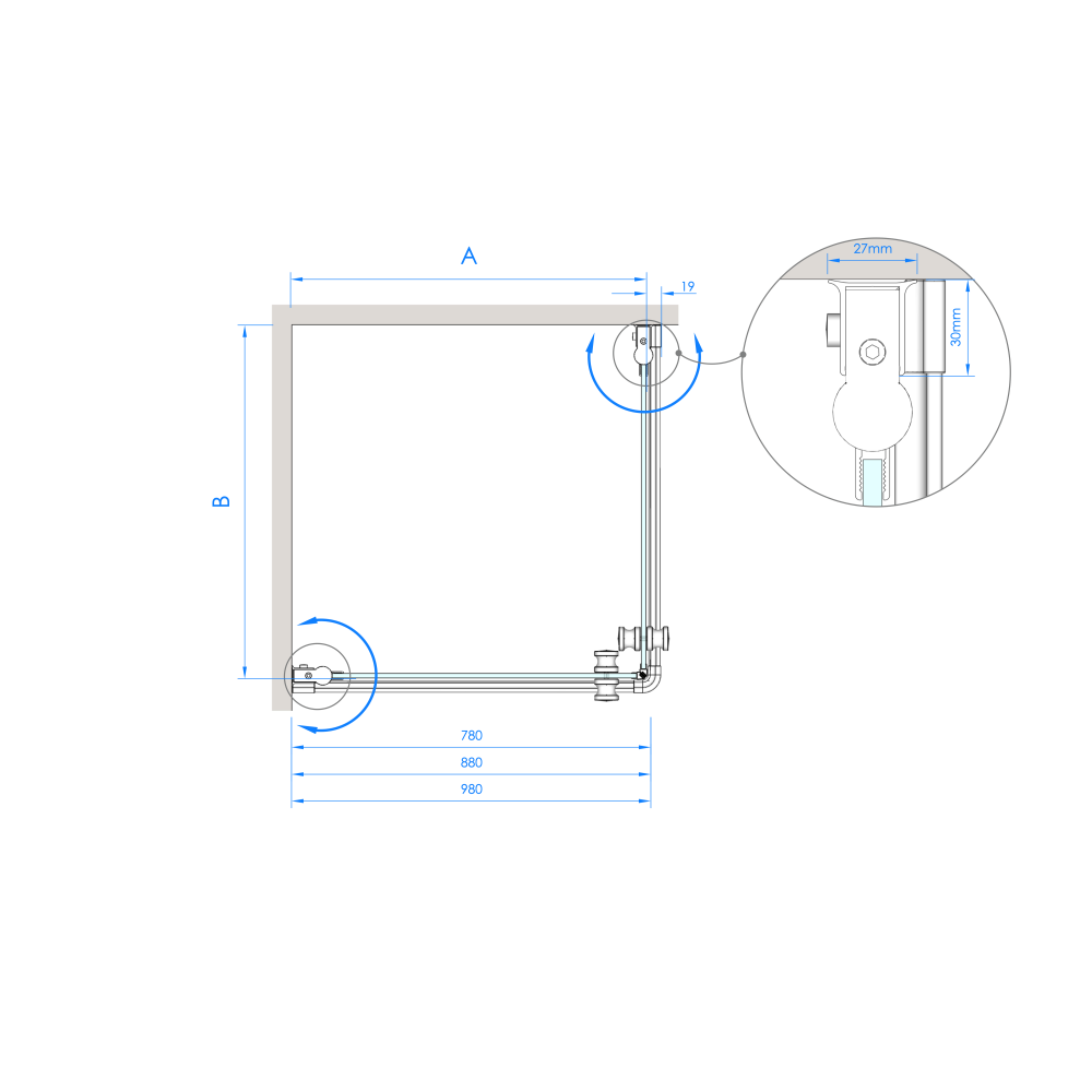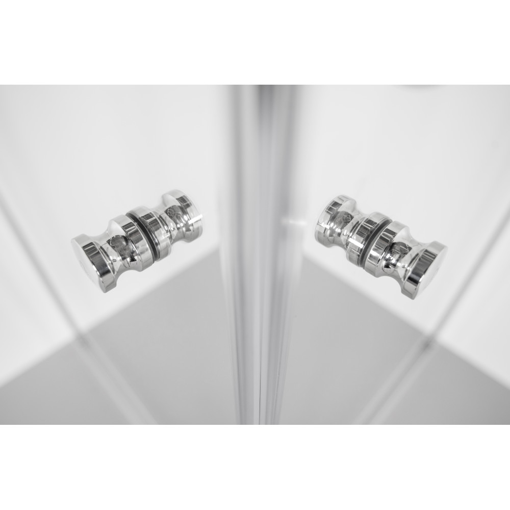 Diese Schwingtür trumpft mit einem starken Design, denn sie kann nach innen oder außen an die Wand geklappt werden. Dank eines integrierten Hebe-Senk-Mechanismus wird die Tür beim Öffnen leicht angehoben – für eine besonders geschmeidige Handhabung. Sie besteht aus 6 mm klarem Einscheibensicherheitsglas und ist darüber hinaus dank ihrer schmutzabweisenden Oberfläche einfach zu reinigen.