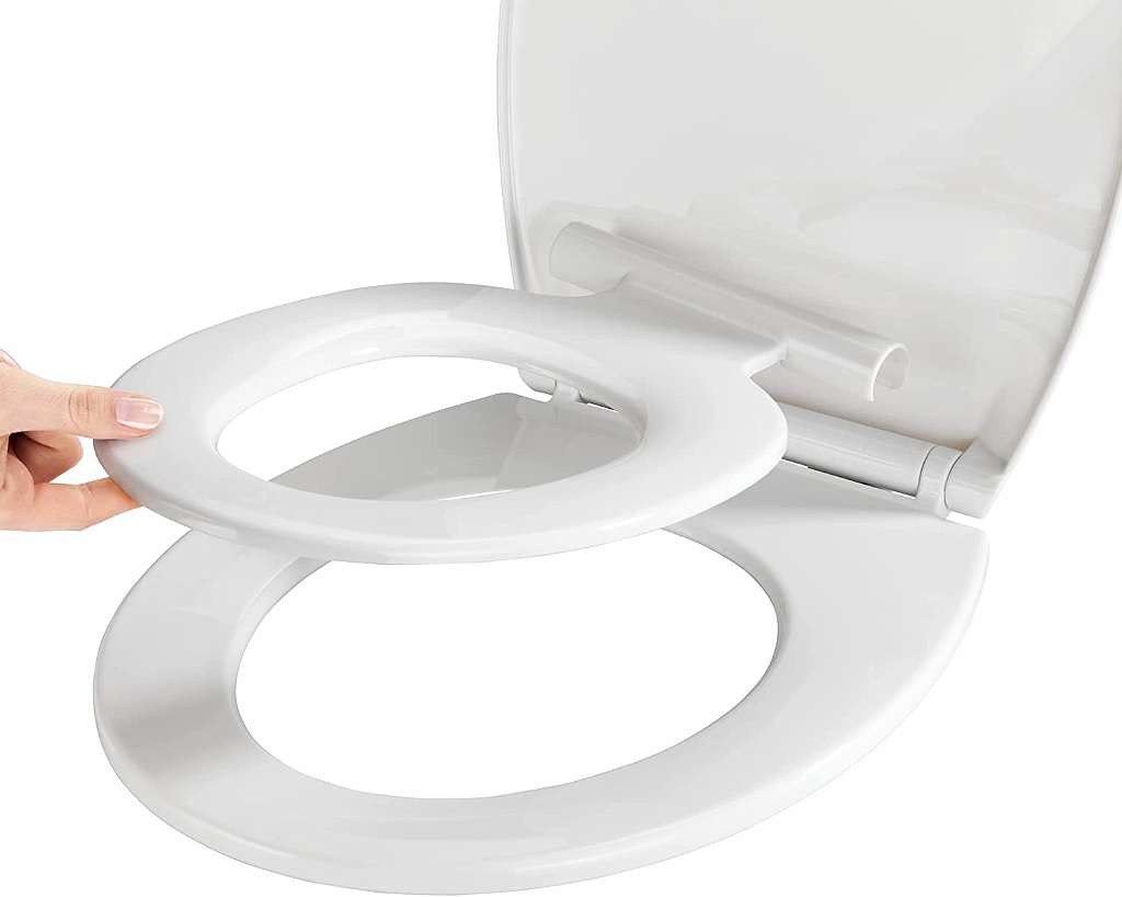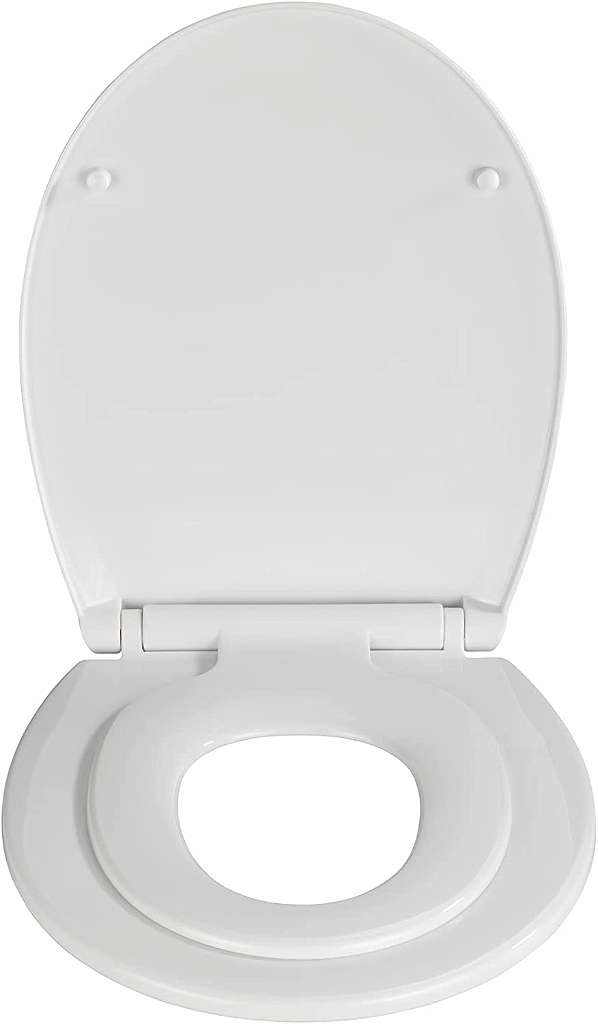- Doppelter WC-Sitz bestehend aus Kindersitz und klassischem WC-Sitz jeweils in Weiß
