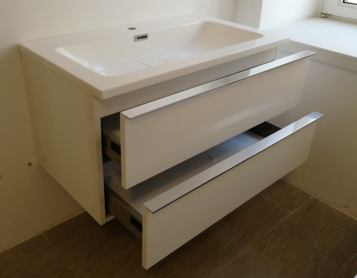 Dank vormontierter Elemente ist das Badmöbel-Set einfach und schnell zu installieren.