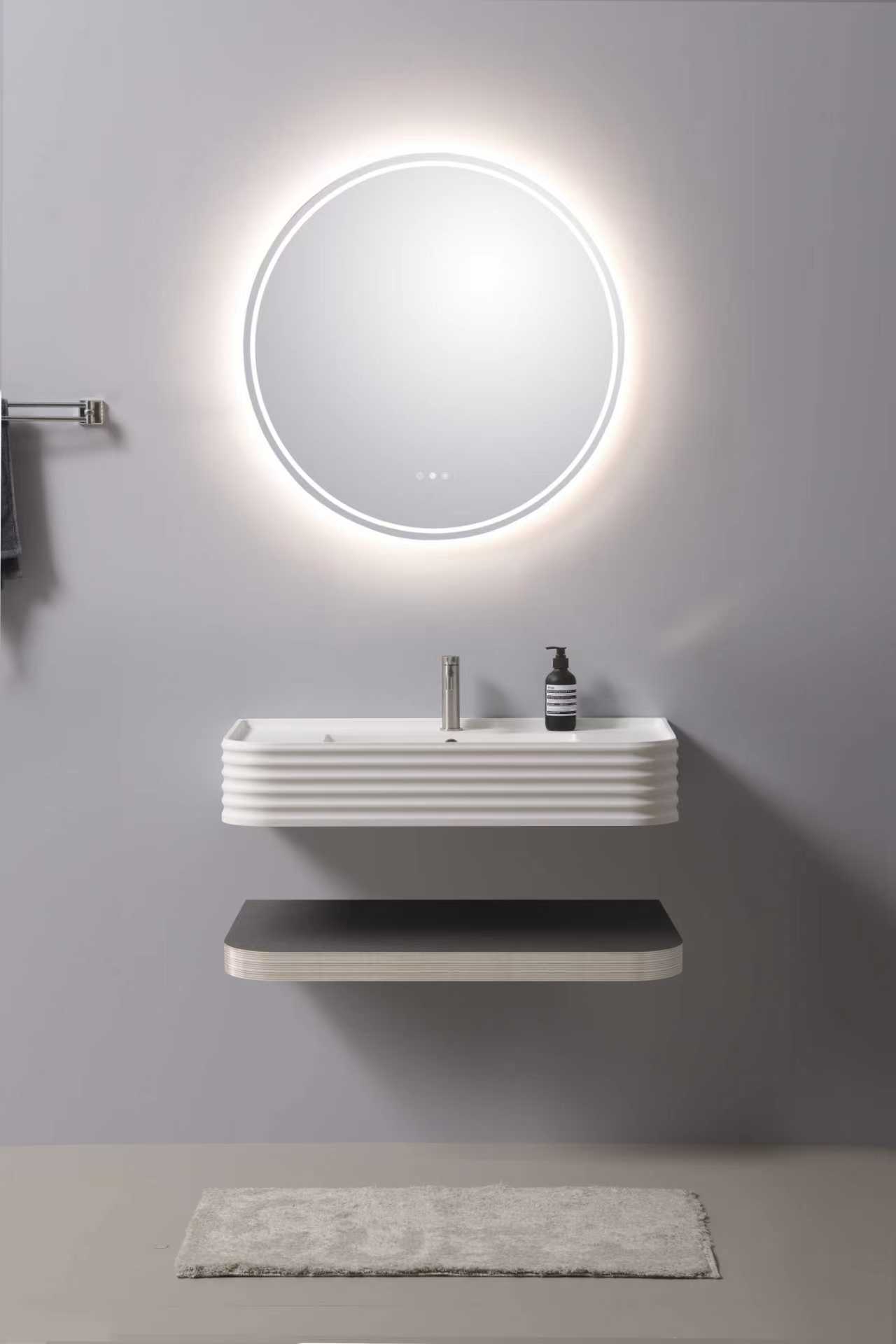 Verleihen Sie Ihrem Badezimmer einen Hauch von Eleganz und Innovation mit unserem hochwertigen LED-Spiegel. Mit einem Durchmesser von 75 cm und seinem zeitlosen, runden Design fügt er sich harmonisch in jedes moderne Wohnkonzept ein.