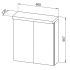 Zwei Spiegeltüren ohne sichtbare Griffe verleihen dem Schrank ein modernes, minimalistisches Erscheinungsbild und integrieren sich harmonisch in die Badezimmereinrichtung. Im Inneren sorgen zwei Einlegeböden für viel Stauraum, damit Badutensilien übersichtlich ordentlich verstaut sind.
