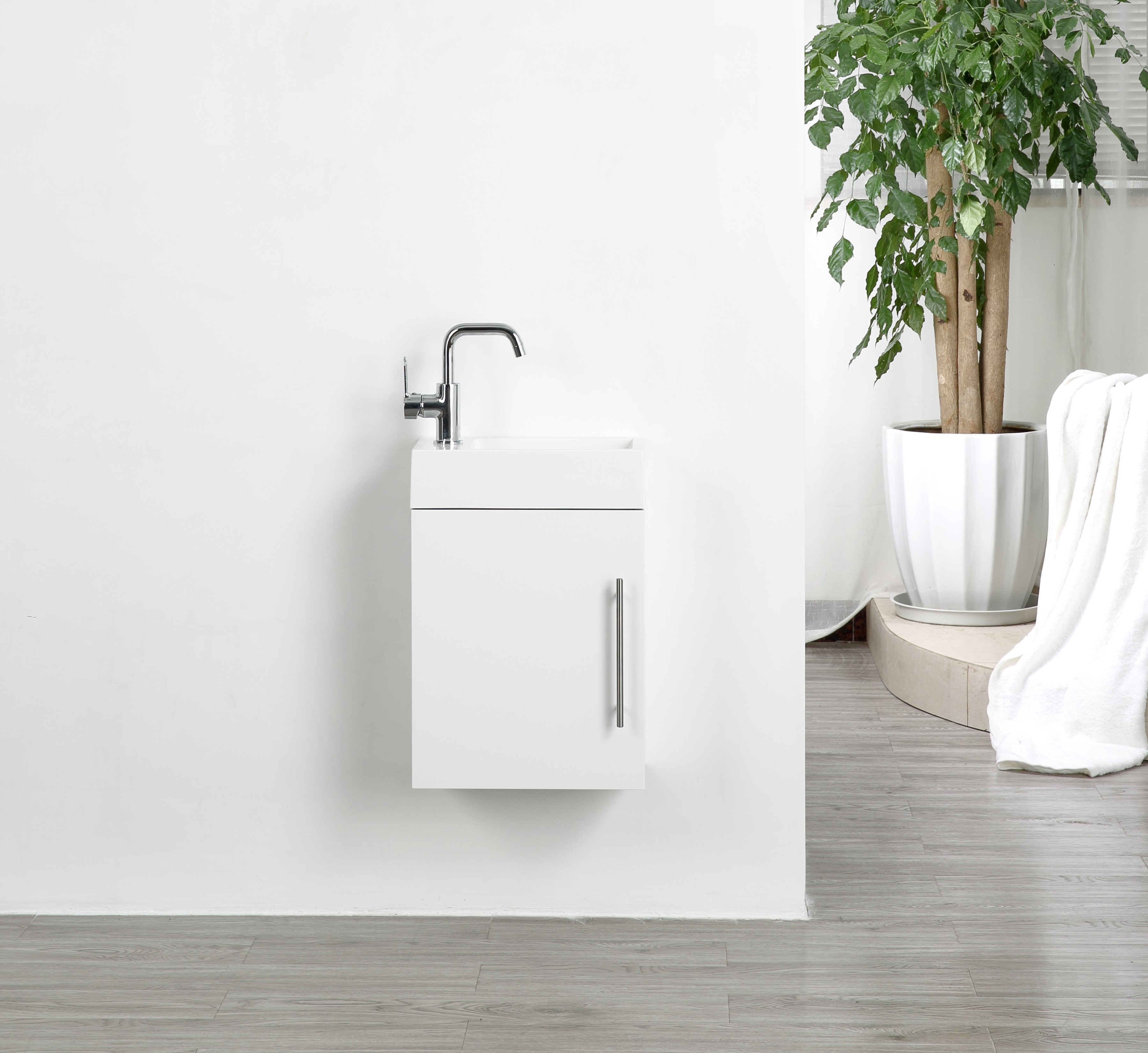 · Reversibles Design: Sowohl die Tür als auch das Waschbecken sind reversibel, sodass Sie die Anordnung flexibel anpassen können.