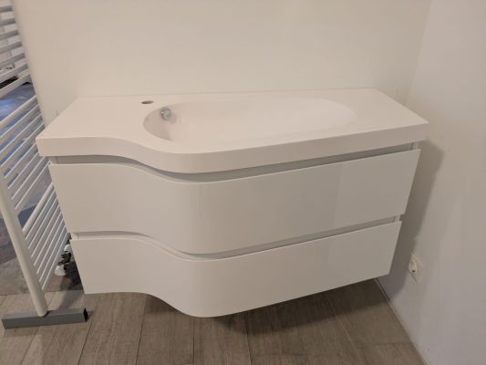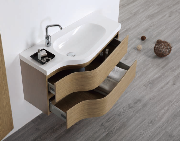 Das Set besteht aus einem 100 cm breiten Waschbecken und einem dazu passenden Unterschrank. Sie bilden eine harmonische Einheit und verwandeln Ihr Badezimmer durch sein sanft geschwungenes Design und seine hochwertige Verarbeitung in einen Raum mit Wohlfühlambiente.